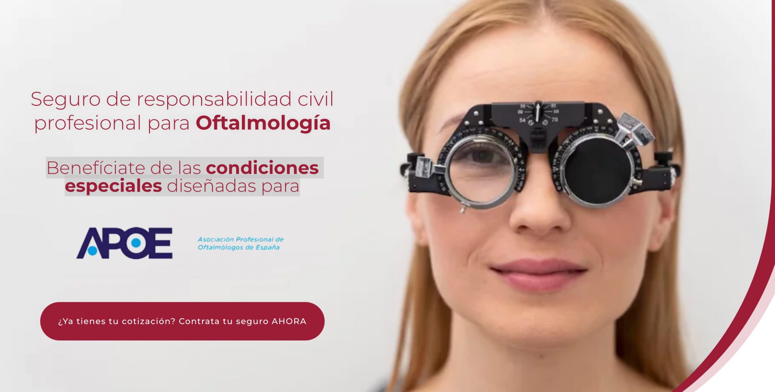 APOE ha llegado a un acuerdo con Medicop para que esta compañía de seguros especializada en seguros para el sector sanitario ofrezca unas condiciones especiales para el seguro de responsabilidad civil profesional para Oftalmología.
