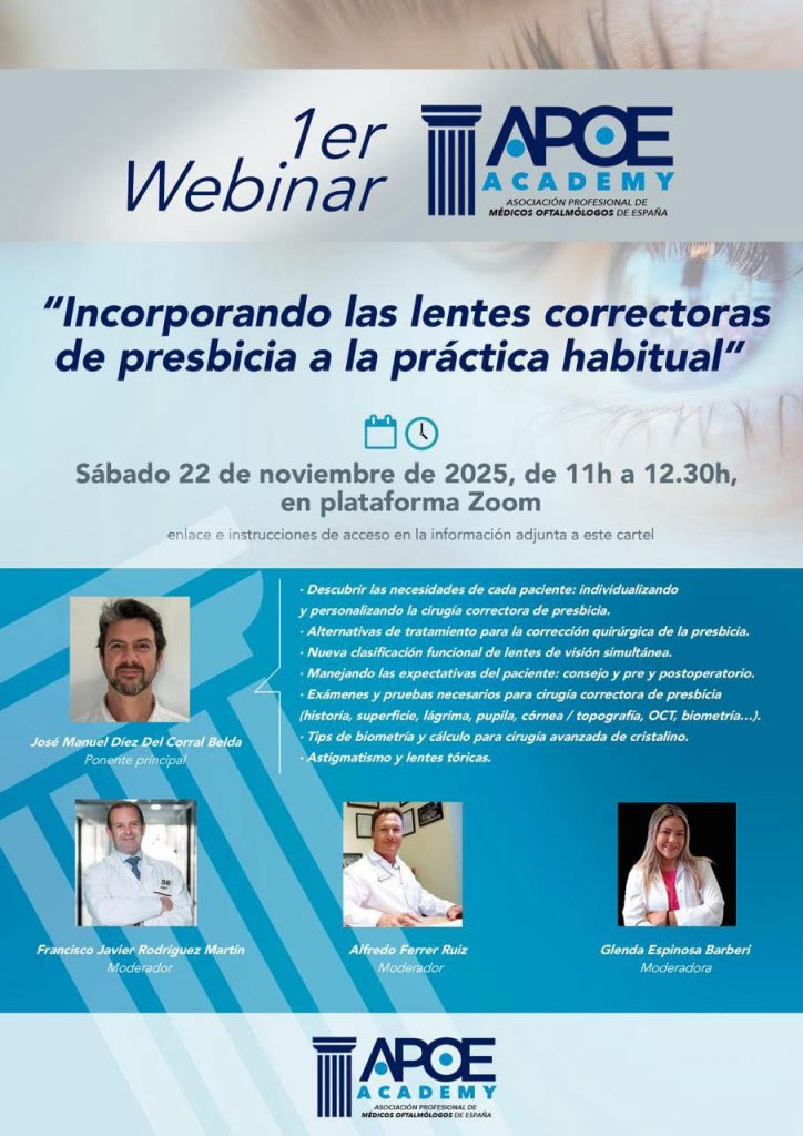 Desde APOE, seguiremos estableciendo estrategias, no solo para defender los intereses de nuestra querida especialidad de oftalmología, sino para contribuir a la difusión del conocimiento científico asociado a la misma .